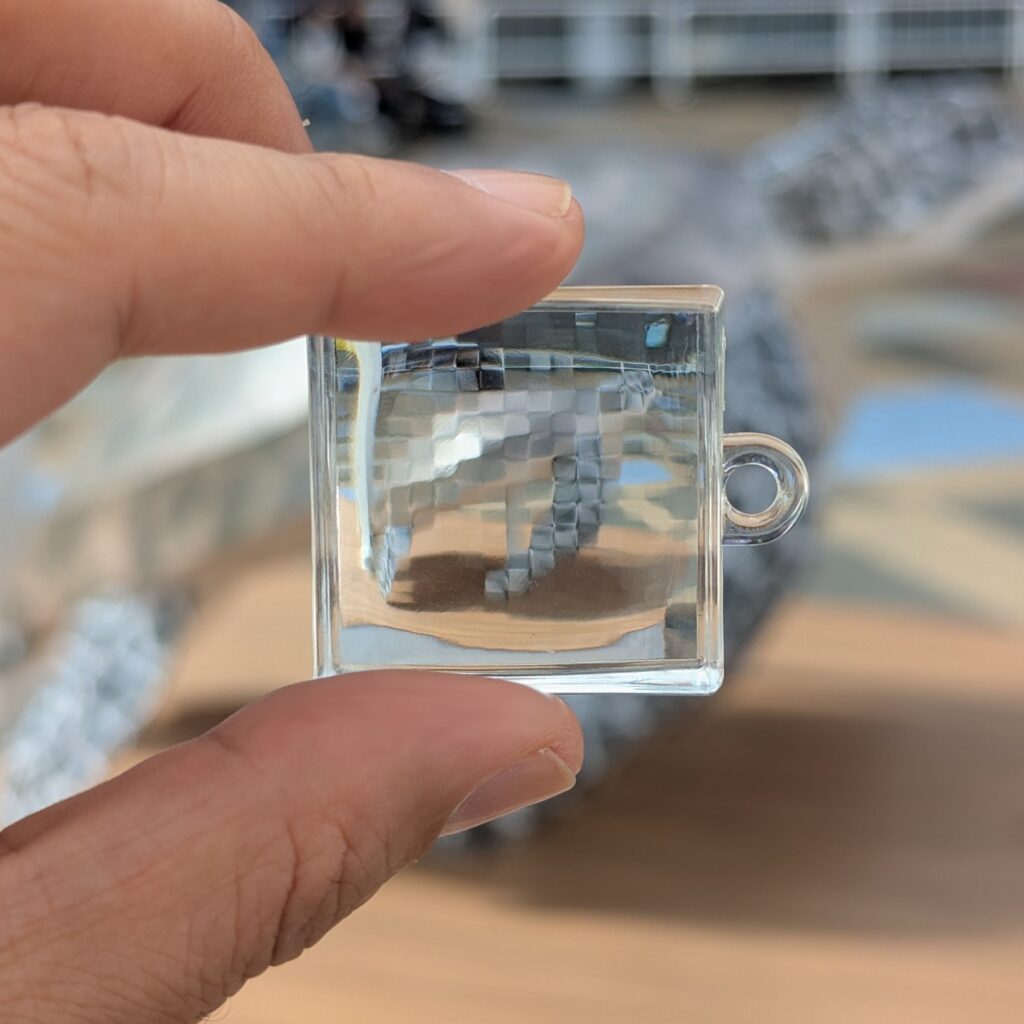 概要 ドット絵風に見えるレンズアクセサリー リストバンド付 科学教育向けおもちゃ (軽量・アクリル製につきケガなし) SNSへのアップにも最適 海外ではマイクラ風として販売されているアクセサリーになります。 詳細 定価 :2000円 (税別) IP関係はクリア...