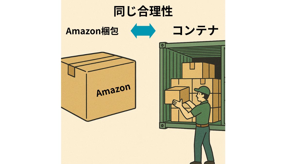 つまり海外物流で「コンテナの内寸」に合わせて外箱を設計するのと、アマゾンが「国内倉庫と配送の効率」を考えて箱を大きくするのは、同じ合理性の裏返しなのです。